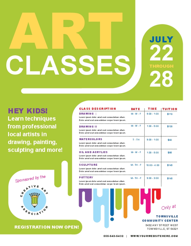 Our free flyer templates will easily arrange your information so that everything is in the right place. Just drop in your text and images and check out.