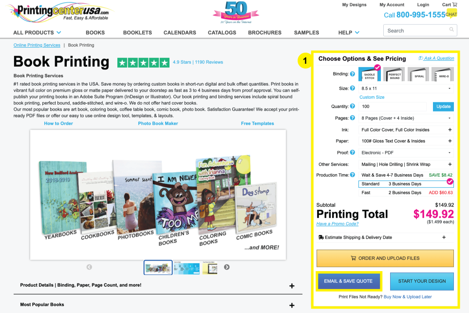 Once you are logged in to your PrintingCenterUSA account, go to your desired product page and fill out the pricing tool on the right.