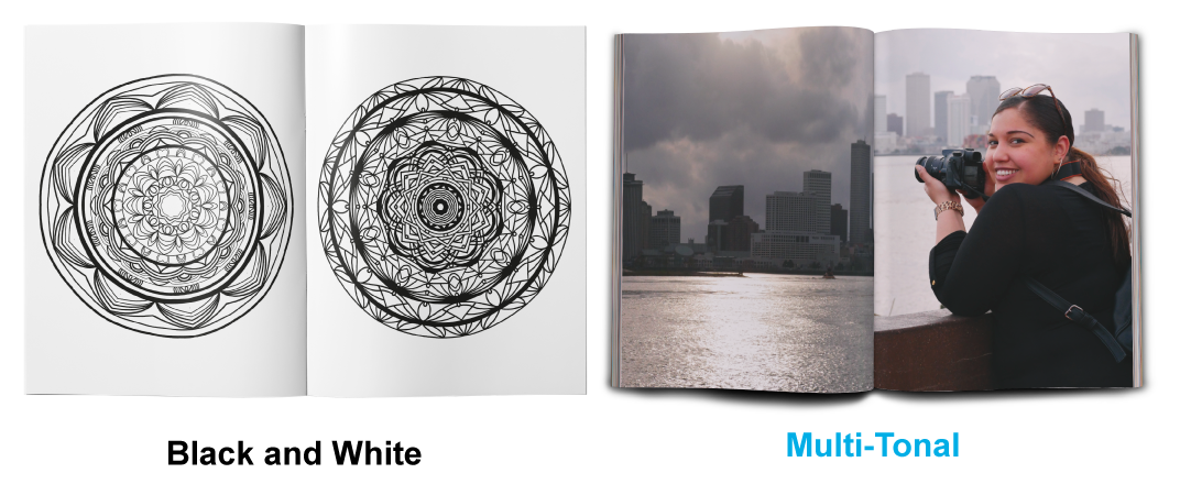 Black and white are reproductions in one single color, as opposed to multi-tonal reproductions.