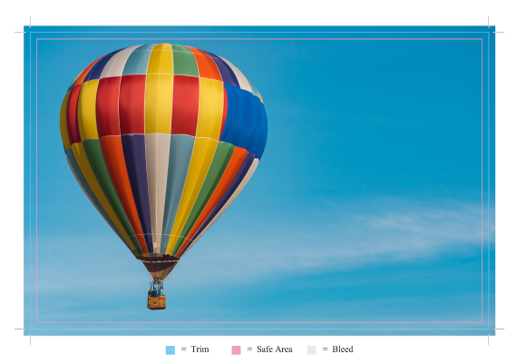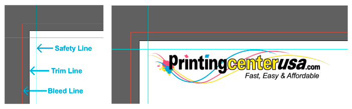 Cutting of your printing piece is done in large stacks and may vary from the top and the bottom of the stack. The safe area is the area of your design that is safest to place all important information such as logos or page numbers that must not get cut off.
