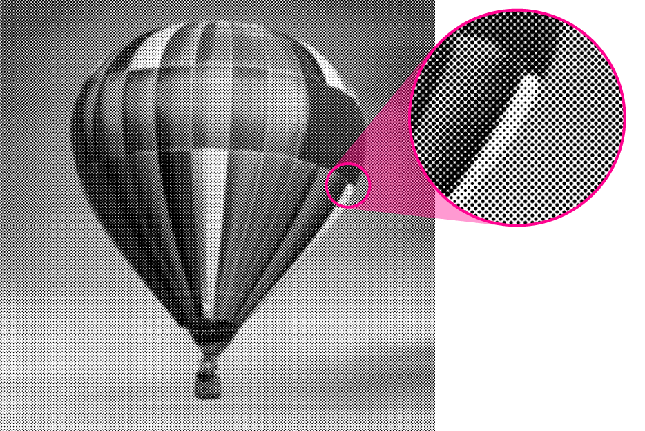 Halftone refers to a production of an image where the gray tones and color tones are produced by dots of ink varying in size.