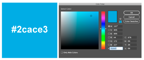 A hex code is a way to identify a specific color using hexadecimal values. A hex code will look similar to: #2CACE3