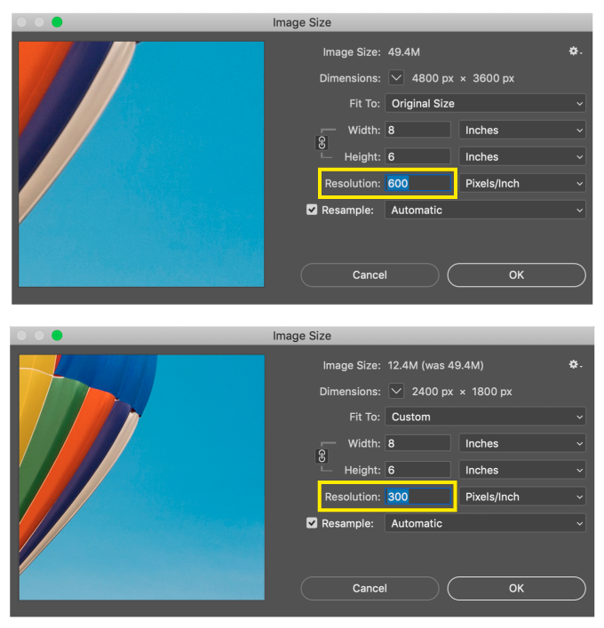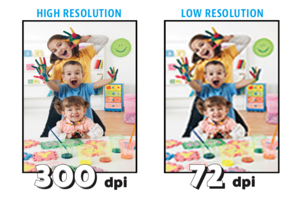 Resolution refers to the level of detail within a digital image. The higher the resolution, the more fine detail in the image. When going to print, it is best to have a resolution of 300 so all text and images will be clear.