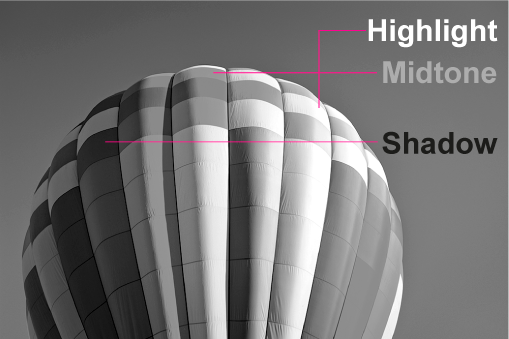 Midtones refer to the medium tones within an image—neither light nor dark.