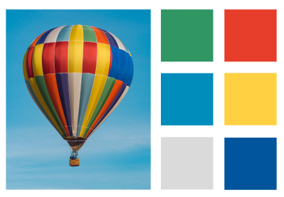 A palette is a chosen range of colors for a design. For example, if your project revolved around the picture below (left), then you may select your supporting design and graphics to be the color swatches below (right).