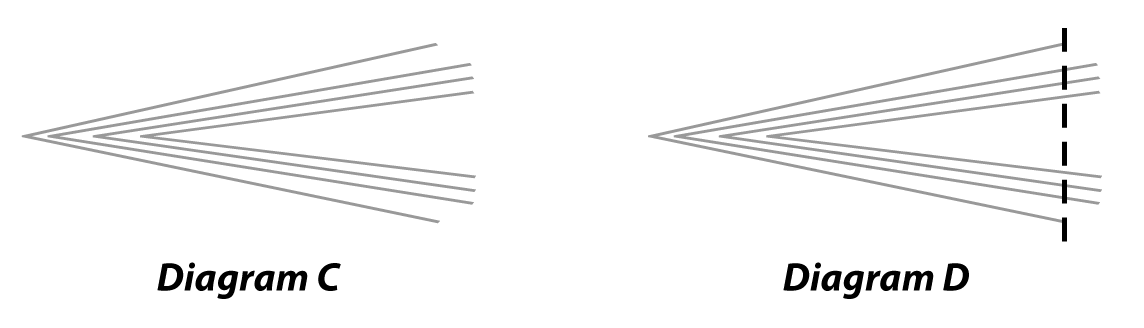 Diagram C below shows how the pages stick out (creep) from the book and Diagram D shows how the pages are trimmed after being stitched.